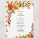 Pretty wedding menu with autumn fall leaves in orange, yellow and green. Perfect for an autumn fall wedding. The words can be changed to suit your own details or requirements.