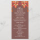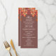 Celebrate the beauty of autumn with this personalised Fall in Love Wedding menu card, perfect for your rustic, country-inspired wedding. Designed with an elegant botanical touch, it features a stunning arrangement of warm orange, brown, and golden yellow leaves, gracefully intertwined with luscious ruby red berries. Set against a warm mocha background, the modern typography and delicate calligraphy script font add a sophisticated yet cosy feel to your autumn wedding. This menu card captures the essence of a dreamy, autumn wedding with a seamless blend of rustic charm and elegant design, making it the perfect addition to your special day.