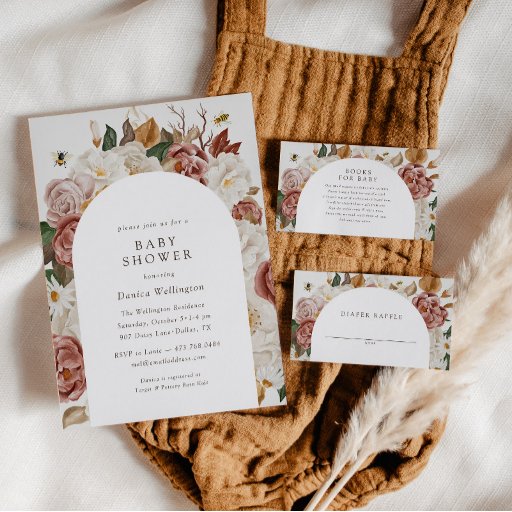 Rustic Autumn Floral | Boho Watercolor Baby Shower Invitation