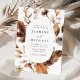 Embrace the beauty of the season with our Rustic Autumn Floral Wedding Invitation, a timeless portrayal of your love story. This exquisite design boasts an oval frame adorned with watercolor flowers and foliage, painted in captivating shades of ivory, cream, brown, and rust-orange. The elegant calligraphy script adds a touch of sophistication, setting the perfect tone for your special day. As the intricately designed frame surrounds your wedding details, it creates a narrative of rustic charm and natural allure. Invite your loved ones to share in the warmth and romance of your celebration, where every element echoes the colours and enchantment of autumn. Elevate your wedding preparations with an invitation that seamlessly combines rustic elegance and graceful design, promising a cherished keepsake that captures the essence of your unique love story.