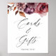 Welcome your guests in style with this Rustic Autumn Floral cards and gifts sign. The design showcases watercolor fall flowers and foliage in rich shades of marsala, burgundy, rust-orange, and brown, paired with modern calligraphy script. Add a short thank-you message or custom text to make it your own. Perfect for fall weddings, bridal showers, baby showers, birthday parties, and other seasonal celebrations, this sign coordinates with our Rustic Autumn Floral wedding collection.
