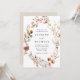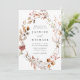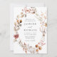 Embrace the enchantment of fall with our Rustic Autumn Floral Wreath wedding invitation. Radiating natural beauty, this invitation showcases an oval wreath adorned with watercolor flowers and delicate foliage in shades of ivory, cream, red, green, brown, and rust-orange. The elegant calligraphy script lends an air of sophistication, perfectly setting the tone for your special day. As the exquisite wreath encircles your wedding details, it weaves a story of timeless romance and rustic charm. Invite your loved ones to share in this unforgettable journey, where the colours of autumn infuse every moment. Elevate your wedding preparations with an invitation that harmoniously combines rustic allure and graceful design – a keepsake that captures the essence of your love story.