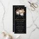 Rustic autumn flowers create an elegant border for on this wedding program template. Bright white cotton flowers are nestled in deep golden brown leaves, Evergreen sprigs and acorns add a seasonal touch. The white text and graphic pop on the black background. There is plenty of room for you to include the important moments of your own wedding ceremony and to honour your wedding participants. This wedding program is part of the Autumn Cotton and Leaves collection which contains many coordinating items such as wedding welcome signs and table number cards.