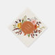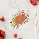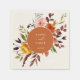 Rustic Autumn foliage and floral frame, personalised paper napkins. Modern design style template provides lines for names and date on burnt orange round frame.