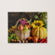 Rustic Autumn Harvest Flowers Pumpkin Jigsaw Puzzle