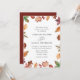 Invite guests to your wedding with our beautiful, rustic fall wedding invitations. The autumn wedding invitations feature your wedding details framed by a border of watercolor fall leaves in shades of brown, green, burgundy, gold, rust, yellow, orange, and burnt umber. The fall leaves wedding invitation reverses to a solid burgundy colour.