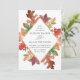 Invite guests to your wedding with our beautiful, rustic fall wedding invitations. The autumn wedding invitations feature your wedding details framed in faux gold foil with watercolor fall leaves in shades of brown, green, burgundy, gold, rust, yellow, orange, and burnt umber. The fall leaves wedding invitation reverses to a solid burgundy colour.