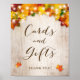 Create your own Cards & Gifts Sign with this "Rustic Wood Autumn Leaves String Lights Wedding Poster" template to match your wedding colours and style. It's perfect for your fall wedding.