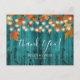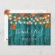 Rustic Autumn Leaves Teal Barn Wood Thank You Postcard