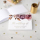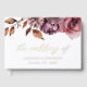 Rustic wedding guestbook featuring watercolor flowers and foliage in shades of marsala, burgundy, purple, rust-orange, and brown. "The wedding of" is displayed in an elegant gold foil calligraphy script. Personalise the front of the fall wedding guest book with your names and wedding date. Add your married name and wedding date to the spine of the guest book. The back of the fall wedding guest book displays your horizontal photo. The photo guest book is perfect for fall weddings.