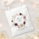 Rustic fall wedding favour bags featuring "Thank You" displayed in an elegant calligraphy script surrounded by a wreath of watercolor flowers and foliage in shades of marsala, burgundy, purple, cream, ivory, brown, and rust orange. Personalise the autumn floral wedding favour bags with your names and wedding date. Designed to coordinate with our Rustic Autumn Floral wedding collection.