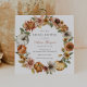 Celebrate the bride to be! Shower invitation features a watercolor autumn floral wreath adorn with pumpkins. Personalise with your information or click "Click to customise further" to edit font styles, size and colours.