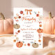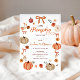 Celebrate your little pumpkin on the way with this adorable baby shower invitation for a girl. The design features a charming arrangement of pumpkins in soft orange and burnt orange, accented with multiple sweet bows for a coquette and boho fall look. A perfect seasonal invitation to welcome your baby girl.