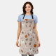 A cosy seamless pattern apron featuring pumpkins in shades of orange, cream, and muted grey, surrounded by autumn leaves and delicate branches. With a warm, earthy palette of burnt orange, soft creams, browns, and muted greens against a subtle background, this design captures the charm of the harvest season. Ideal for lovers of rustic fall aesthetics, farmhouse style, and seasonal autumn.