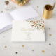 The romance of an Autumn wedding is captured in this elegant design featuring watercolor roses and greenery in warm Fall colours of terracotta, ivory, rust, chestnut, dusty blue and sage green with touches of gold sparkles. This design also features unique text graphics in a custom calligraphy script font and floral highlights in genuine foil.