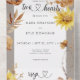 AVAILABLE WITH A QR CODE OR WITH OR WITHOUT DINNER SELECTION OPTIONS. Embark on a journey into the warmth of autumn romance with our beautiful fall invitation. Picture a canvas of love adorned with the rich, earthy hues of the season. A pristine white background welcomes you, hosting a splendid watercolor display of autumn florals. Rust-coloured mums and golden sunflowers sway gracefully, creating a symphony of warmth. The taupe frame embraces this masterpiece, setting the stage for the celebration that awaits. The arrangement is a dance of colours — deep browns, comforting taupe, creamy whites, and the vibrant gold of sunflowers, all meticulously painted in a watercolor dream. The blooms are scattered in a casual, free-spirited manner around the invitation, invoking the effortless beauty of nature. In the heart of this floral haven lies the essential details of the day, presented in an elegant white text box. This invitation is more than a piece of paper; it's a glimpse into the love that blooms like the autumn flowers depicted. Created by Simply Farmhouse Press.