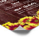 Add a touch of vintage charm to your special day with this rustic, floral-themed drinks / lovers' libations / sweethearts' sips menu, which features a fall-blooming medley of vivid, two-tone mini sunflowers set on a weathered fence. Customize accordingly with your choice of refreshments (beer, cocktails, wine, spirits, and non-alcoholic drinks).