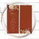 Rustic Fall Terracotta Wedding Menu. Set the tone for your reception meal with this autumn-inspired menu, perfect for a cosy fall or winter wedding. Featuring watercolor foliage in burnt orange and terracotta with cream and copper florals, this card brings seasonal elegance to every place setting. Celebrate your culinary offerings with style—let your menu reflect your wedding’s warmth.