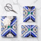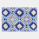 Rustic Azulejo Spanish Pattern Tiles Navy White Wrapping Paper Sheet