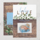 Baby Birth Announcement. Information on front and back. "Baby Love", wood, blue. Rustic. Foliage. Boy. Photo.