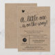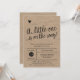 This trendy gender neutral invitation features a hand lettered heading, "A little one is on the way" and your information in a grid style on the front. Both sides have a kraft background. Choose from one of the white paper options for best results.