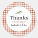 Add a fun and thoughtful touch to your favours with these Rustic Baby Shower Thank You Classic Round Sticker! Featuring a muted peach and terracotta plaid background and bold modern typography, these tags are perfect for thanking guests at your baby shower barbecue.