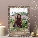 Your custom photo over faux texture background with baby's breath border and your text over faux torn paper design.