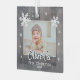 Rustic Baby's First Christmas Wood Snowflakes Photo Glass Ornament. Lovely white snowflakes on a dark wood background. Baby's name is in a trendy script. Personalize the ornament with your baby's photo, name and year. A lovely Christmas holiday keepsake for parents, grandparents,...