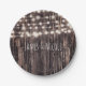 Rustic Bark Wood & String Lights Fall Party Plates. Customise with any text. Matching items are available.