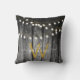 Rustic Barn Black Wood Gold String Lights Monogram Cushion