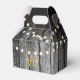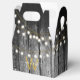 Rustic Barn Black Wood Gold String Lights Monogram Favour Box
