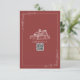Wedding RSVP with rustic barn illustration with botanical border. Background is muted red. Personalise the text and QR code.
