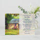 This wedding invitation features a rustic barn with a patriotic American flag in a charming wooded country setting. ~