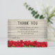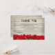 Wedding thank you card, featuring a rustic weathered barn wall, fronted with bright red tulips