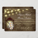 Rustic lantern decorated with daisies and baby's breath rustic country barn wedding invitation with sparkle effect twinkle lights design.