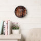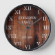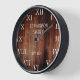 Rustic, dark barn wood wall clock with large Roman numbers.