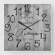 A rustic, unique, one-of-a-kind personalised design features a faux wood background with and the words, "MICHAEL & KAREN Anderson est. 20XX" in black typography. Personalise this clock by adding your own personal information. Makes a great wedding, anniversary, or housewarming gift. Click "personalise this template" to change the names and fonts to create a unique one of a kind design. What a nice accessory for your living room, bedroom, or family room. If you need any help with customisation please email me at ybnormalone @gmail.com. Thanks for stopping by www.zazzle.com/WhisperingPines. ©Karen Hall