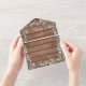 All in one wedding invitation features a beautiful floral greenery cascade, elegant typography, and monogram initials on a background of rustic barn wood panels. The invitation includes a perforated RSVP card with your wedding website QR code. Designed by Thisisnotme©