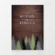 Amaze your guests with this elegant forest theme wedding invitation featuring beautiful pine trees with modern typography against a barn wood background. Simply add your event details on this easy-to-use template and adorn this card with your favourite photos to make it a one-of-a-kind invitation.