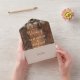 This rustic barn wood string lights wedding invitation can be personalised with your information in modern typography. The invitation includes a perforated RSVP card with your wedding website QR code and details. Designed by Thisisnotme©