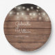 Rustic Barn Wood String Lights Script Wedding Paper Plate
