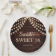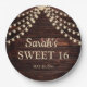 Rustic Barn Wood String Lights Sweet 16 Name Date Paper Plate