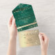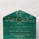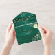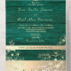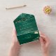 Celebrate your love with an exquisite blend of modern elegance and vintage country bohemian flair. Our rose gold and barn wood emerald green all-in-one wedding invitation features intricate gilded gold floral lace, complete with RSVP details and a personalised wedding website link. Your monogram graces the top, adding a touch of bespoke charm. Each invitation is hand-addressed on the back, ensuring a truly personal touch for your special day.