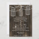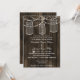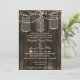 Rustic Barnwood, dangling string lights mason jar wedding invites. Matching products also available.