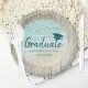 These rustic beach themed graduation party paper plates feature a lovely pastel beach scene with aqua blue waves rolling onto the shore, framed with rustic weathered wood, and decorated on top with string lights. The word Graduate is topped with a grad cap, and the graduates name and class year are underneath it.