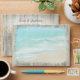 Here are matching envelopes for the rustic wood beach ocean wedding invitations. The beach scene with aqua blue waves crashing against the shore, is framed with rustic weathered wood, and decorated on the flap with string lights. This rustic coastal design is easily personalised for your special day, and is also perfect for other rustic beach themed events.