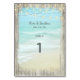 Complete your coastal rustic beach wedding table décor with these table number cards. Aqua blue ocean waves crash on the beach with white sea foam spray, framed with weathered wood and string lights on top.