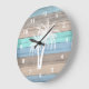 Rustic Beach Wood Nautical and White Palm Trees Large Clock