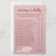 Add fun and laughter to your woodland baby shower with this Mummy or Daddy game card! Guests will guess who is more likely to do certain parenting tasks – mummy or daddy – making it a playful and interactive activity for everyone. Featuring a sweet mama and baby bear on a blush pink background, this rustic game card is perfect for celebrating the parents-to-be while keeping guests entertained.