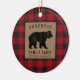 A beautiful, rustic themed ceramic ornament with your personalised family name and cabin, lodge or other desired text and it's location or established date. This unique custom design features hand drawn style artwork of a bear on faux burlap with red buffalo plaid print. A charming addition to your vacation home, holiday christmas tree decor. To see more designs like this please visit my store "Rustic_Charm" here at Zazzle. Thanks.